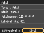 Valitun käyttäjän LDAP-palvelimeen tallennettu käyttäjänimi, faksinumero tai sähköpostiosoite syötetään vastaanottajakenttään.