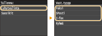 -näytöstä <Faksiasetukset>. Kohdassa <Osoitekirja> tehdyt asetukset ovat kuitenkin käytettävissä osoitekirjaan tallennettujen vastaanottajien tarkkoja asetuksia varten. |