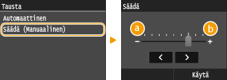 Voit säätää kopion tummuutta, jos asiakirjan teksti tai kuvat ovat liian vaaleita tai tummia. Voit myös säätää taustaa poistamalla taustavärin, kun asiakirjan sivut ovat väriltään vaaleita tai kellastuneita.