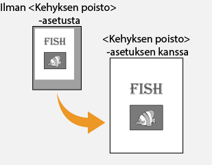 Kun kopioidaan asiakirjoja, jotka ovat pienempiä kuin tulostukseen käytetty paperi, kopioidun kuvaan ympärillä voi näkyä kehys. Kun kopioidaan sivuja paksusta kirjasta, reunat voivat olla tummia. <Kehyksen poisto> -toiminnolla voit poistaa nämä kehykset ja tummat reunat.