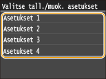 Muokkaa tallennettuja asetuksia valitsemalla muokattava asetusyhdistelmä vaiheessa 3 ja muokkaa sen jälkeen asetuksia.