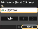 Tarvittaessa voit lisätä tauon faksinumeron loppuun napauttamalla kohtaa <Tauko>.