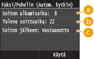 Kun valitaan <Faksi/Puhelin (Autom. kytkin)>