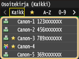 Tallennusosoitteeksi voidaan määrittää vain osoitekirjassa oleva vastaanottaja. Se on tallennettava etukäteen osoitekirjan käyttämistä varten. Tallentaminen osoitekirjaan