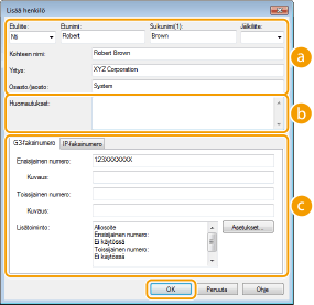 Jos haluat muuttaa tai poistaa tallennettuja vastaanottajia, valitse vastaanottaja kohdasta [Osoitekirja] ja valitse [Muokkaa] tai [Poista].