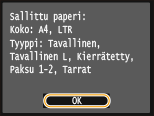 Näytössä näkyy viesti <Korjausta ei voitusuorittaa.>.Lisättiinkö tavallista/kierrätettyä/paksua paperia tai A4- tai Letter-tarroja?