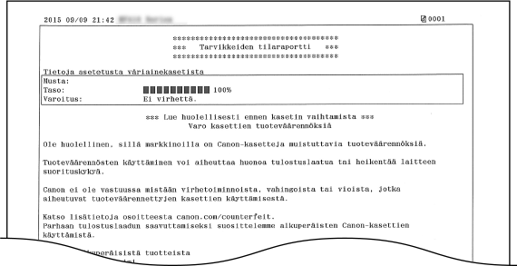 Voit tarkistaa koneeseen asennettujen tarvikkeiden tilan.