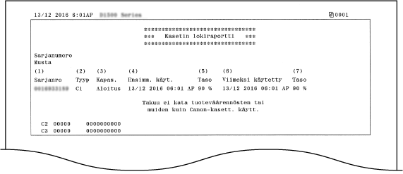 Voit tarkistaa laitteeseen asennettujen väriainekasettien käyttölokit.