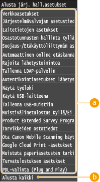 <Verkkoasetukset> <Alusta verkkoasetukset> <Kyllä> Käynnistä laite uudelleen |