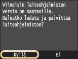 Jos <Tämä on viimeisinohjelmistoversio.> -ilmoitus tulee esiin, laiteohjelmistoa ei tarvitse päivittää.
