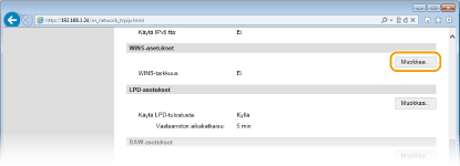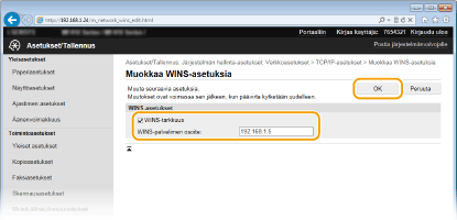 Jos WINS-palvelimen IP-osoite haetaan DHCP-palvelimelta, haettu IP-osoite menee kentässä [WINS-palvelimen osoite] määritetyn IP-osoitteen edelle.