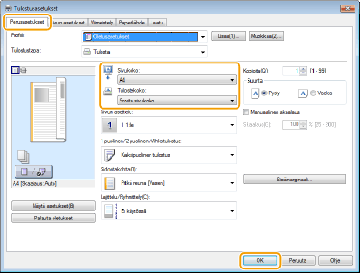 Valitse paperikoko kohdassa [Tulostekoko]