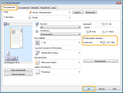 Valitse [Manuaalinen skaalaus] -valintaruutu
