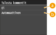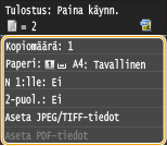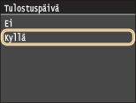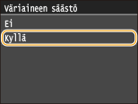 Napauttamalla <Kyllä> voidaan tulostaa väriaineen säästötilassa. Valitse <Kyllä>, jos haluat tarkistaa asettelun tai muita ulkoasun ominaisuuksia ennen suuren työn lopullista tulostamista.