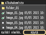 ![]() ![]() Jos valitsit tiedoston ennen kuin napautat kohtaa <Kaikki nimikk.>, voit valita vain samanmuotoisia tiedostoja.