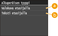 Voit valita alkuperäisen tyypin tulostettavan kuvan mukaan. Valitse <Valokuva etusijalla> tai <Teksti etusijalla>.