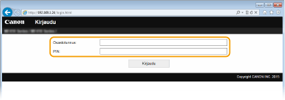 Valitse [Järjestelmänvalvojan tila] tai [Yleinen käyttäjätila] ja syötä arvo kohtaan [Etäkäyttöliittymän PIN] tarvittaessa.