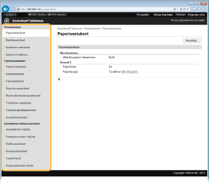 Eräitä asetuksia voidaan muuttaa vain, kun olet kirjautunut järjestelmänvalvojan tilassa.