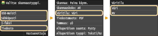 Valitse <USB-muisti> tai määritä vastaanottaja: <Sähköposti>/<Tiedosto>