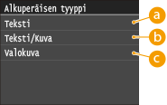 Voit valita skannauksen kuvanlaadun asiakirjatyypin mukaan, esimerkiksi vain tekstiä sisältävät asiakirjat, kuvia ja kaavioita sisältävät asiakirjat tai lehtikuvat.