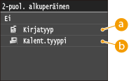 Valitse <Kirjatyyppi> tai <Kalenterityyppi>