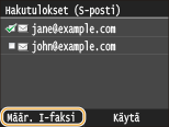 Jos toimistossa on asennettuna LDAP-palvelin, voit määrittää vastaanottajan käyttämällä palvelimessa olevia käyttäjätietoja. Avaa LDAP-palvelin laitteen avulla, etsi asiaankuuluvat käyttäjätiedot ja määrite ne vastaanottajaksi.