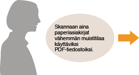 Valitse <Tiedostomuoto>-asetukseksi <PDF (Pakattu/OCR)> ja tallenna se oletusasetukseksi. Tämän jälkeen tiedostomuotoa ei tarvitse vaihtaa skannattaessa. Oletusasetusten muuttaminen