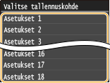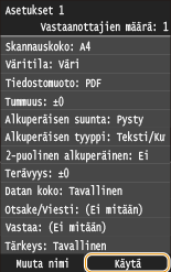 Jos haluat muokata tai poistaa tallennettuja asetuksia, siirry kohtaan <Skannaus>  <Sähköposti>/<I-faksi>/<Tiedosto>  <Suosikkiasetukset>  <Muokkaa/Poista>  <Muokkaa> tai <Poista> ja noudata alla olevia ohjeita.