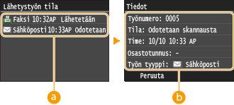 ![]() <Lähetystyön tila>Näyttää luettelon asiakirjoista, joita lähetetään tai jotka odottavat käsittelyä.