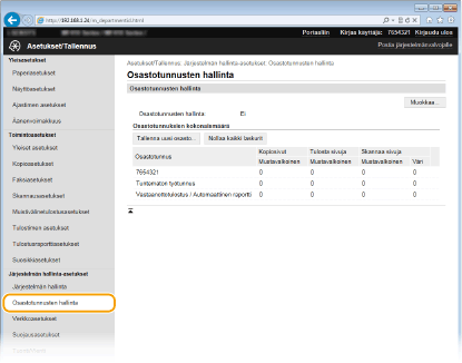Valitse [Osastotunnusten hallinta] kohdassa [Käyttäjien hallinta]. |