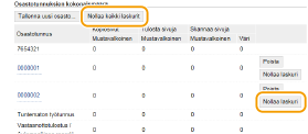 [OK]. Jos haluat nollata kaikkien osastotunnusten laskurit, valitse [Nollaa kaikki laskurit] [OK].![]() Valvontakorttien käyttäminenKun valinnainen Copy Card Reader-F1 (Kopiokortinlukija F1) on liitetty laitteeseen, 300 järjestysnumeroa tallennetaan automaattisesti.