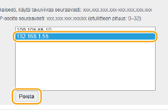 Syötä IP-osoite (tai IP-osoitealue) [Tallennettava osoite] -kenttään ja valitse [Lisää].