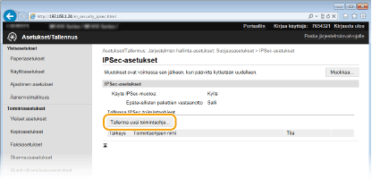 Määritä asetukset [Voimassa] ja [Autentikointi]/[Salaus]/[DH-ryhmä].