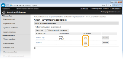 Vahvista avainpari valitsemalla [Avain- ja varmenneasetukset] tai CA-varmenne valitsemalla [CA-varmenteen asetukset].