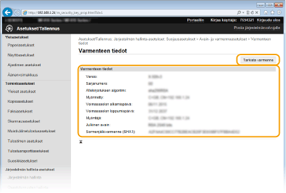 Tarkista varmenteen tiedot ja valitse [Tarkista varmenne].