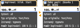 <Nastavení papíru>Toto tlačítko slouží také k zadání velikosti a typu papíru vloženého v zásuvce na papír a víceúčelové přihrádce. Zadání velikosti a typu papíru