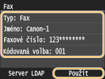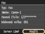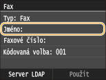 Jméno uživatele, faxové číslo nebo e-mailová adresa vybraného uživatele, které jsou registrovány v serveru LDAP, jsou zadány do cílového pole.