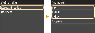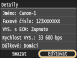 <Nastavení faxu>. Nastavení provedená v části <Adresář> jsou však povolená pro podrobná nastavení míst určení, která jsou uložená v adresáři. |