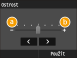 Můžete upravit ostrost kopírovaného obrazu. Ostrost zvyšte, chcete-li zostřit rozmazaný text a linky, případně snižte, chcete-li zlepšit vzhled fotografií v časopise.