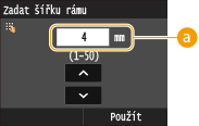 nebo číselná tlačítka pro zadání šířky rámu (1 až 50 mm).