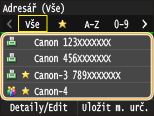 Místa určení lze zadat z adresáře jejich výběrem ze seznamu uložených míst určení nebo jejich vyhledáním podle jména, pokud je k místu určení přiřazeno jméno příjemce.