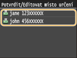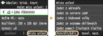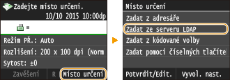 Pokud máte v kanceláři nainstalován server LDAP, můžete pomocí informací o uživateli vybrat místa určení uložená na tomto serveru. Získejte přístup k serveru LDAP prostřednictvím zařízení pro hledání vhodných informací o uživateli a zadejte ho jako místo určení.