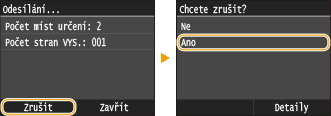 Klepněte na tlačítko <Zrušit> na obrazovce během odesílání faxu