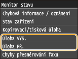 Pokud je pro možnost <Zobrazit výpis úloh> vybráno nastavení <Vypnuto>, protokoly komunikace nelze kontrolovat. Zobrazit výpis úloh