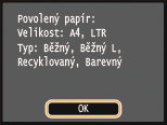 Zkontrolujte, že je v zařízení vložen papír velikosti a typu odpovídajícího zobrazeným údajům, a klepněte na tlačítko <OK>.