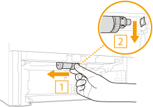 Zasuňte pravý dřík tak, že tlačíte váleček na podávání papíru doleva.