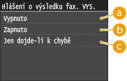 <Hlášení o výsledku fax. VYS.> nebo <Hlášení o výsledku VYS. e-mailu/I-faxu/souboru>