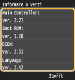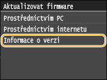Verzi firmwaru lze zjistit z ovládacího panelu zařízení. Po provedení aktualizace firmwaru se ujistěte, že byla aktualizace provedena správně. Kontrola verze firmwaru