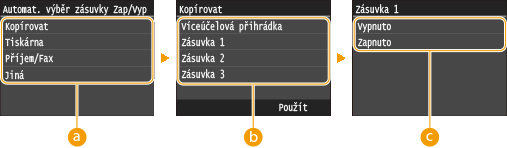). Automatický výběr zásuvek je vždy povolen pro tisk na papír zaváděný z víceúčelové přihrádky.