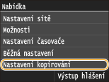 Všechna nastavení týkající se kopírování jsou uvedena s krátkým popisem. Výchozí nastavení jsou označena křížkem (